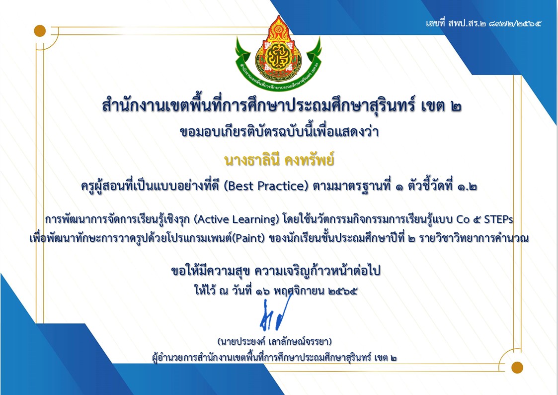 ร่อยรอยหรือหลักฐานของการเป็นแบบอย่างที่ดี(Best Practice) ปี 2565