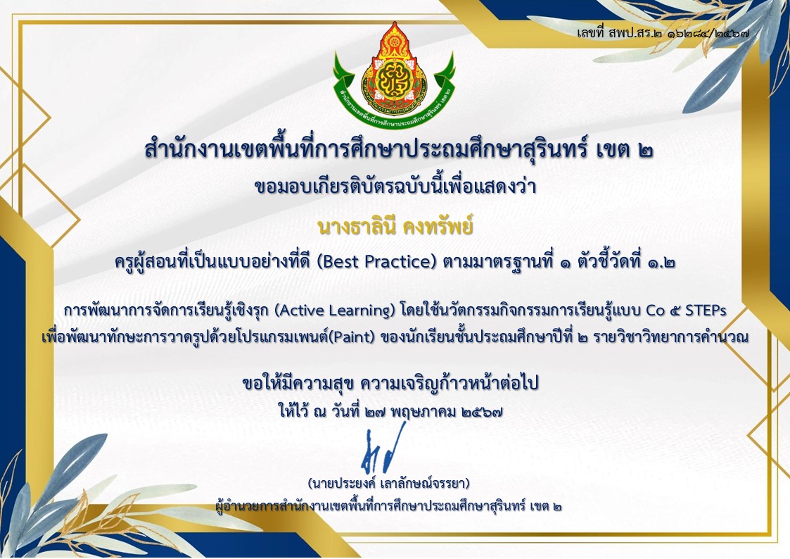 ร่อยรอยหรือหลักฐานของการเป็นแบบอย่างที่ดี(Best Practice) ปี 2567