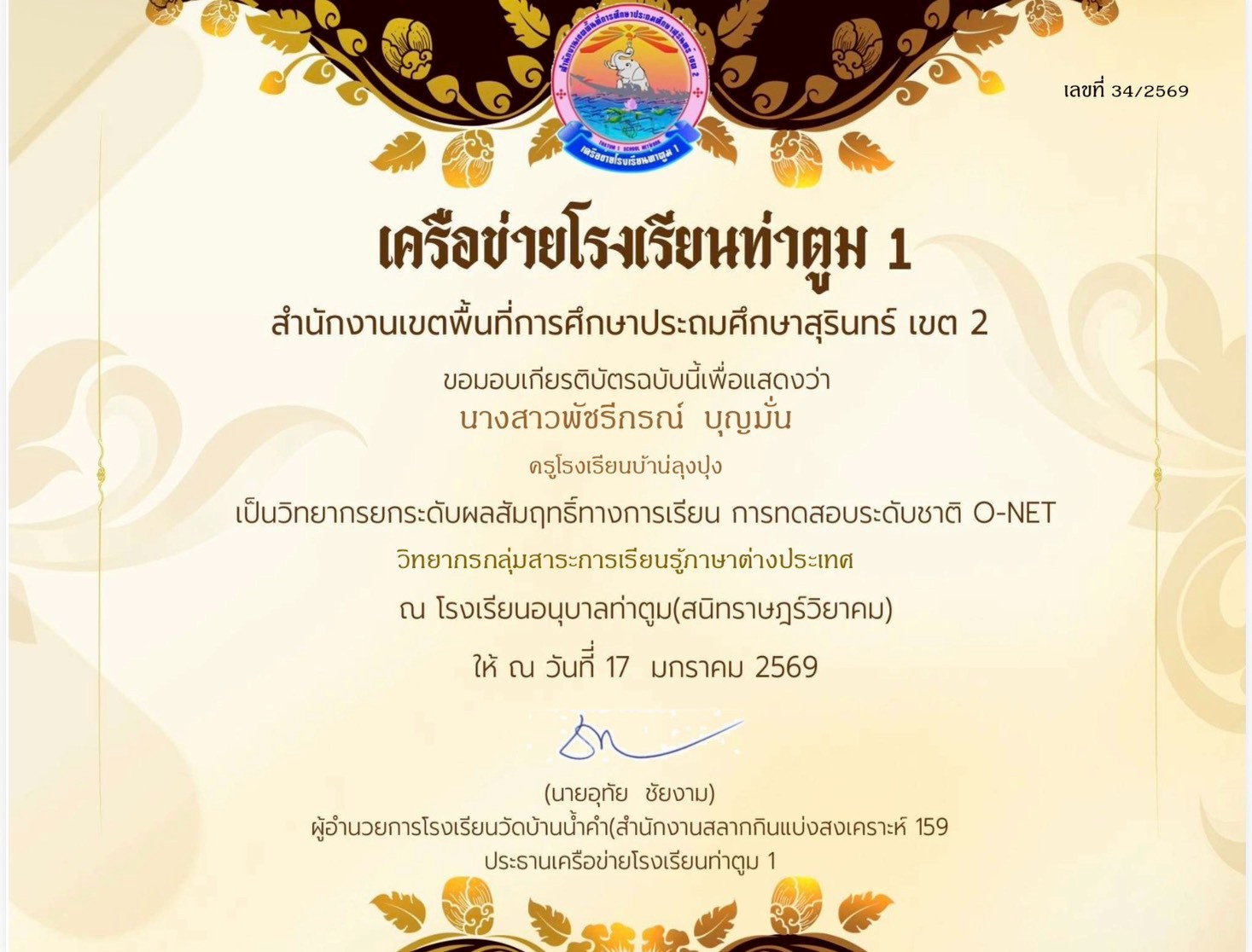 ชื่อผลงาน : วิทยากรยกระดับผลสัมฤทธิ์ทางการเรียน การทดสอบระดับชาติ O-NET วิทยากรกลุ่มสาระการเรียนรู้ภาษาต่างประเทศ