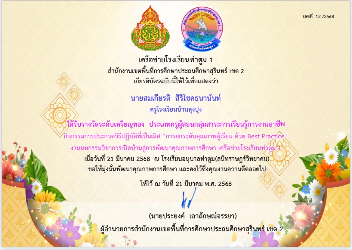 รางวัล ระดับ เหรียญ ทอง ประเภท ครู ผู้ สอน กลุ่ม สาระ การ เรียน รู้ การ งาน อาชีพ กิจกรรมการประกวดวิธีปฏิบัติที่เป็นเลิศ "การยกระดับคุณภาพผู้เรียน ด้วย Best Practice" งานมหกรรมวิชาการเปิดบ้านสู่การพัฒนาคุณภาพการศึกษา เครือข่ายโรงเรียนท่าตม 1 |
