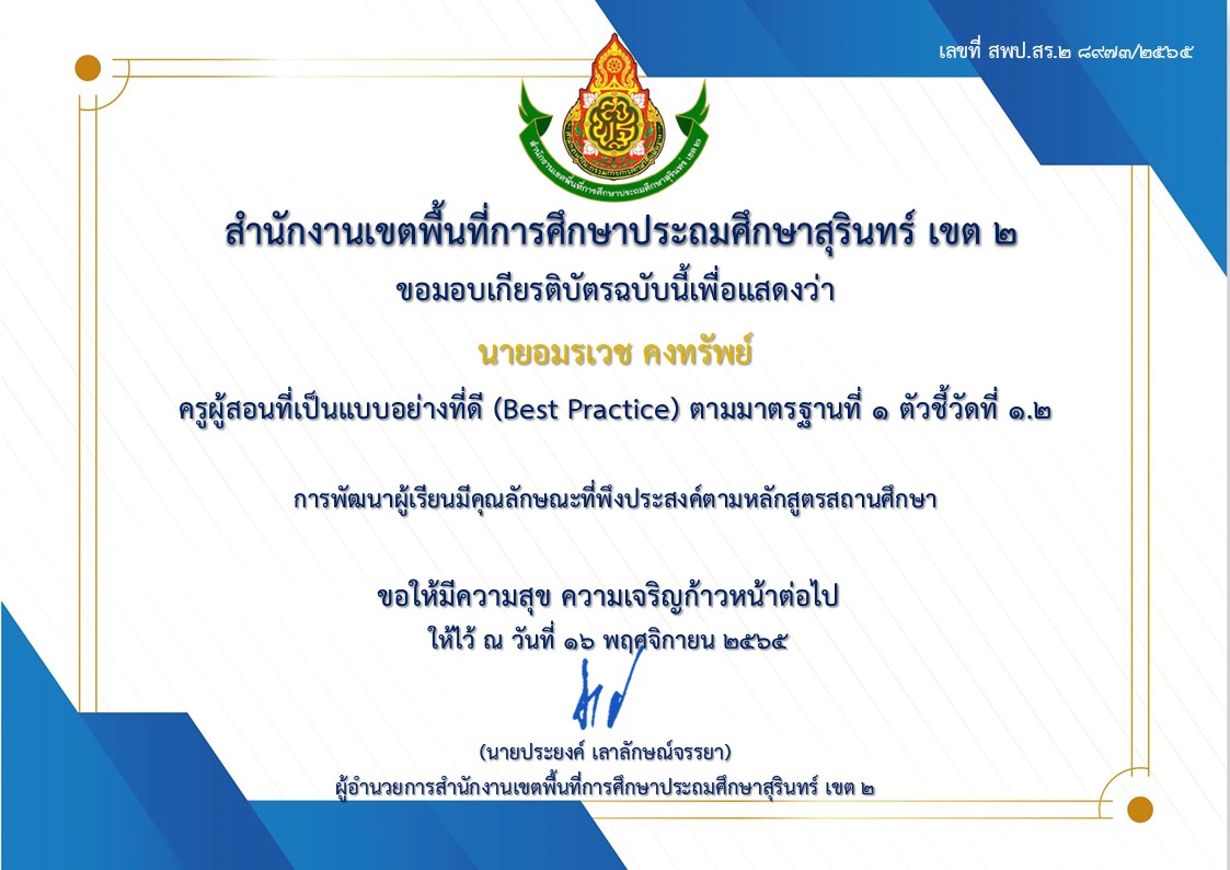 ร่อยรอยหรือหลักฐานของการเป็นแบบอย่างที่ดี(Best Practice) ปี 2565