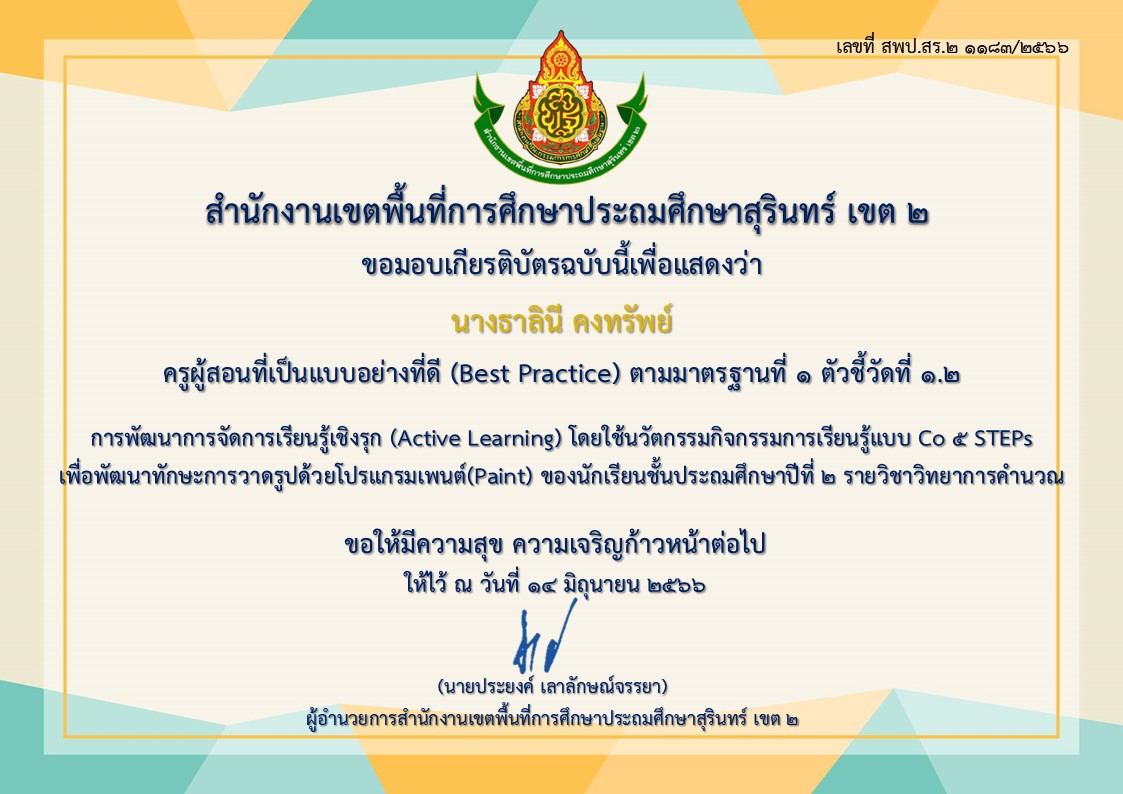 ร่อยรอยหรือหลักฐานของการเป็นแบบอย่างที่ดี(Best Practice) ปี 2566