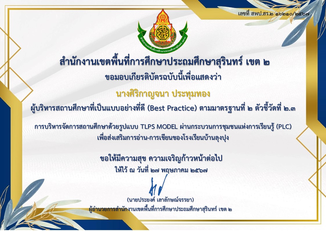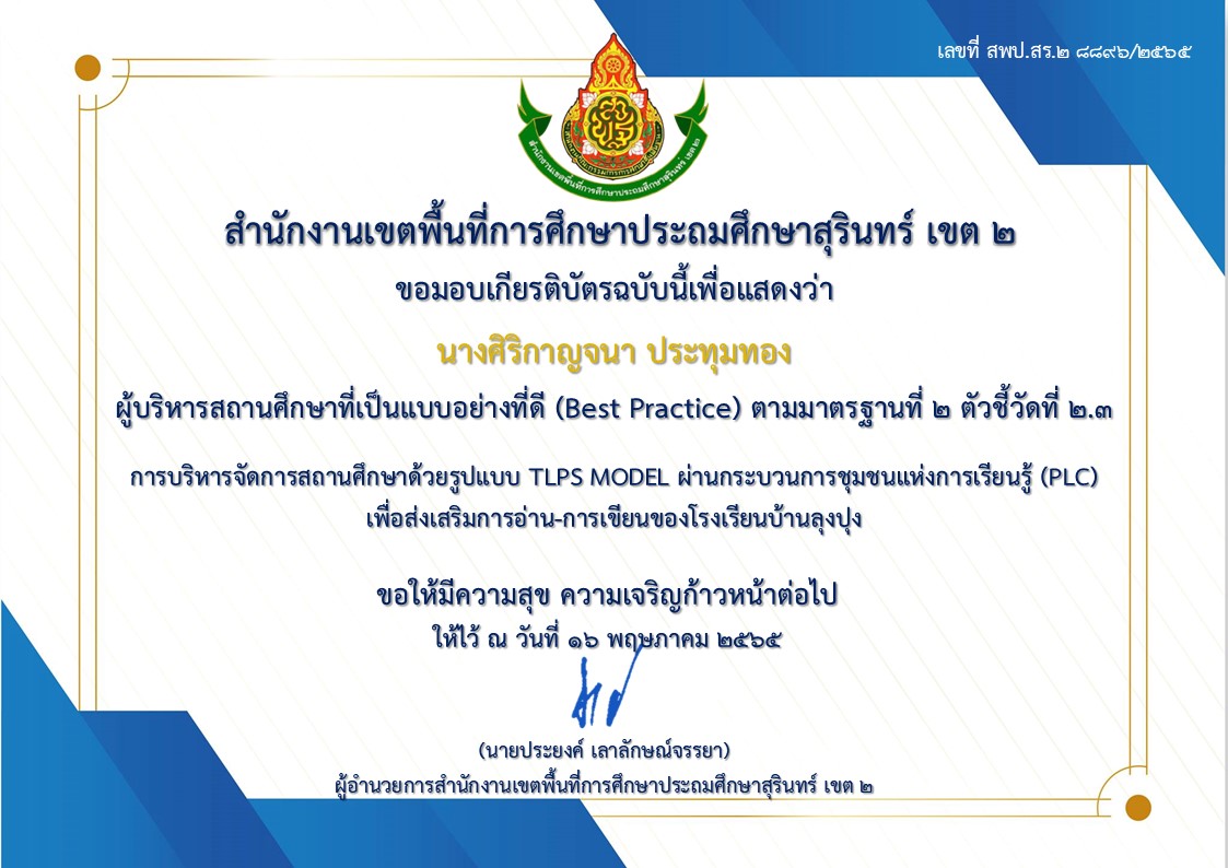 หลักฐานร่องรอย มาตรฐานที่ 2 การพัฒนาคุณภาพการบริหารจัดการสถานศึกษา ตัวชี้วัดที่ 2.3 ผู้บริหารสถานศึกษามีภาวะผู้นำทางวิชาการและบริหารจัดการด้วยหลักธรรมาภิบาล