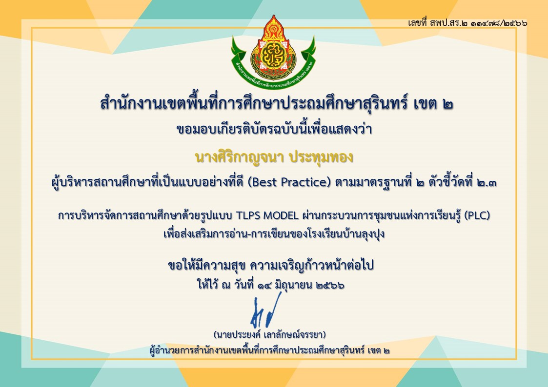 ร่อยรอยหรือหลักฐานของการเป็นแบบอย่างที่ดี(Best Practice) ปี 2566