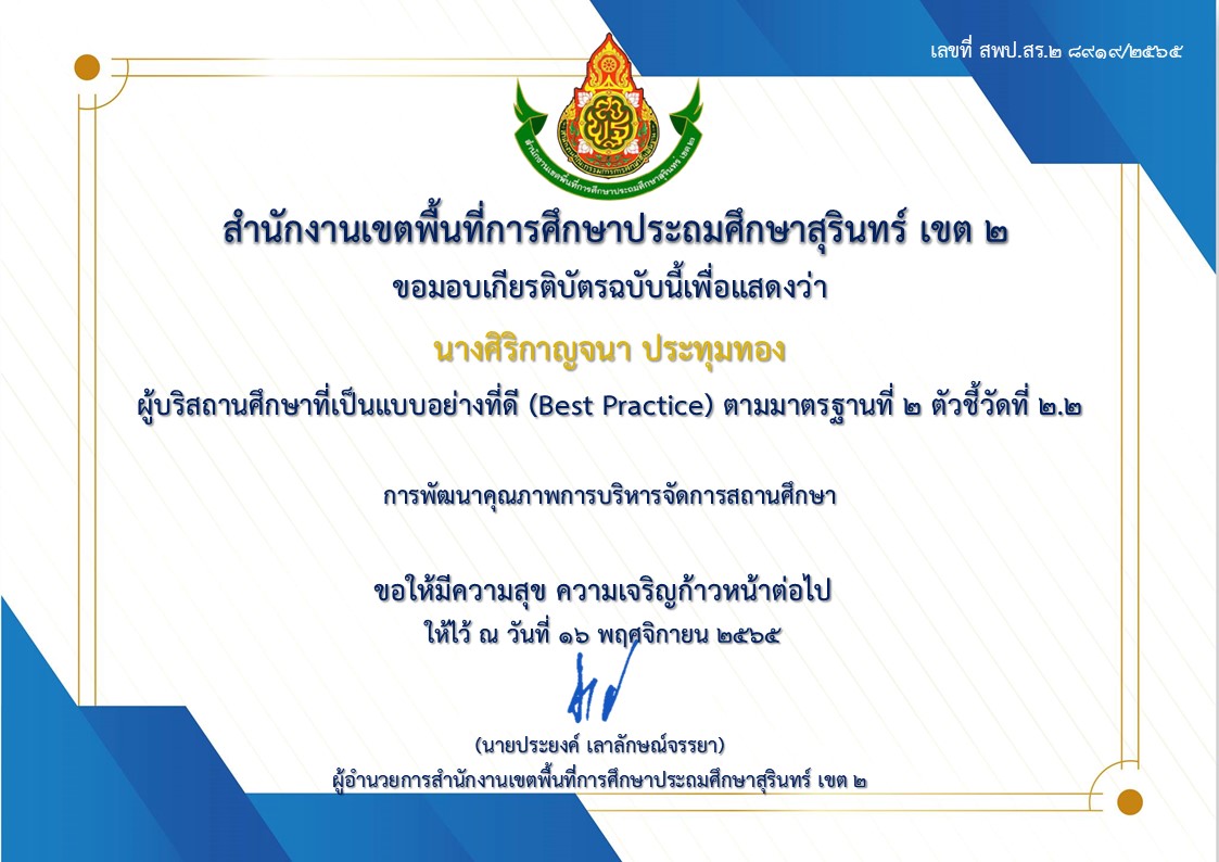 ร่อยรอยหรือหลักฐานของการเป็นแบบอย่างที่ดี(Best Practice) ปี 2565