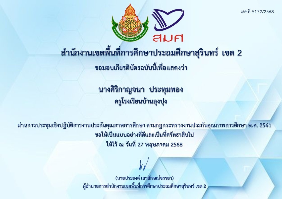 ชื่อผลงาน : ผ่านการประชุมเชิงปฏิบัติการงานประกันคุณภาพการศึกษา ตามกฎกระทรวงงานประกันคุณภาพการศึกษา พ.ศ. 2561