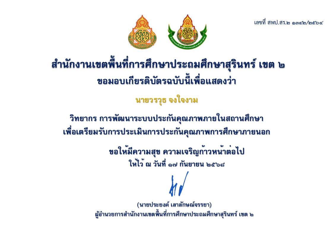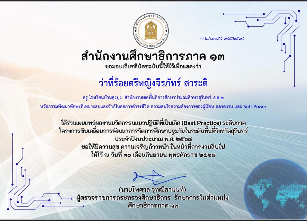ครูต้นแบบ จัดการเรียนรู้เชิงรุก (Active Learning) ที่บูรณาการสาระการเรียนรู้ท้องถิ่น กับหลักสูตรแกนกลางการศึกษาขั้นพื้นฐาน พุทธศักราช ๒๕๕๑ ฉบับปรับปรุง พ.ศ. ๒๕๖๖ และหลักสูตรการศึกษาประถมศึกษาตอนต้น พ.ศ. ๒๕๖๘ |